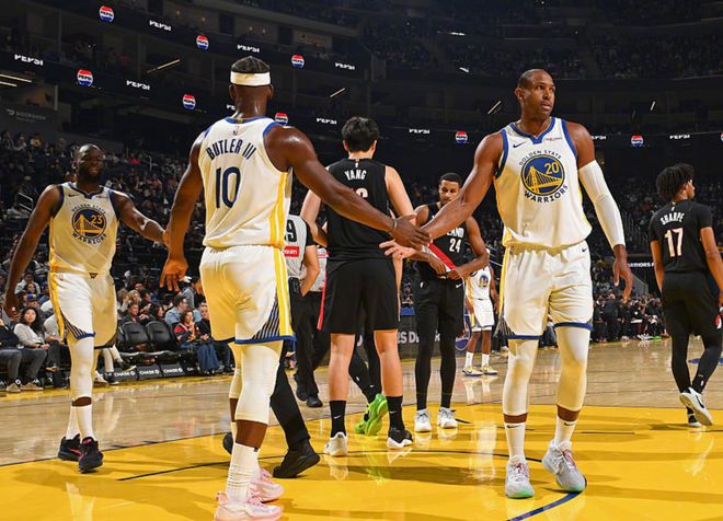 著實有點尷尬了,這兩場比賽的共同點是,勇士后場籃板保護極差。就舉一個例子,和開拓者一戰,格林+霍福德一共搶到3個籃板球,開拓者首發中鋒克林根,打了11分鐘,拿到6個前場籃板。開拓者可不是森林狼、快船、雷霆、火箭這些一線豪門,那意味著勇士新賽季護框下限只會更低!科爾面臨兩難選擇,拿上霍福德,他的體能不足以支撐首發的出場標準,只能是偽首發角色。但除了四位老人之外(霍福德39歲+庫里37歲+巴特勒36歲+格林35歲),最后一個名額該屬于誰?打湖人表現最好的穆迪,打開拓者在場輸10分。